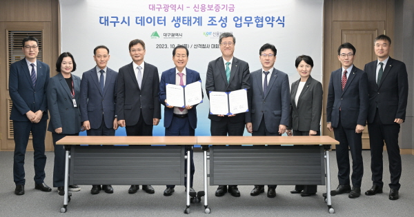 NSP통신-대구시는 5일 산격청사 대회의실에서 국내 최대 중소기업 정책금융기관인 신용보증기금과 대구시 데이터 생태계 조성을 위한 업무협약을 체결했다. (사진 = 대구시)