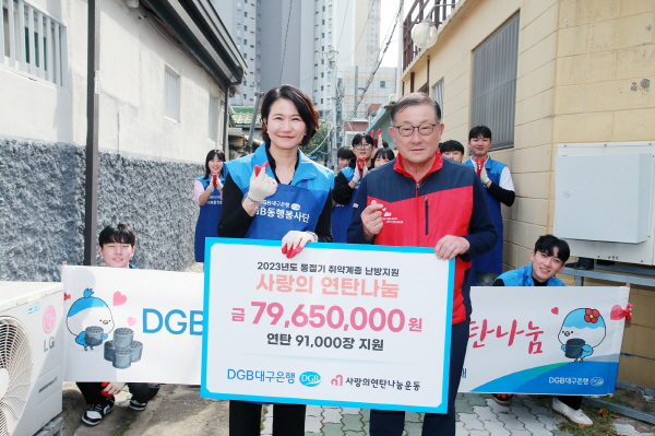 DGB대구은행은 올해 말까지 9만1000여장의 연탄을 대구지역 9개 구·군과 경북지역 14개 시·군에 거주하는 취약계층 455세대에 지원할 예정이다.