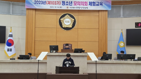 (경북=NSP통신) 최병수 기자 = 포항교육지원청(교육장 천종복)은 지난 14일 포항시 의정회와 함께 2023년 청소년 모의의회 체험교육을 실시했다.