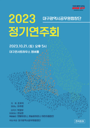 (대구=NSP통신) 최병수 기자 = 대구시 공무원합창단은 오는 21일 오후 5시 대구콘서트하우스 챔버홀에서 이종화 경제부시장의 사회로 ‘2023년 정기연주회’를 개최한다.