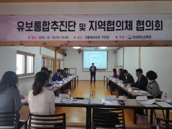 (경북=NSP통신) 조인호 기자 = 경상북도교육청(교육감 임종식)은 18일 안동시 소재 전통리조트구름에에서 유보통합의 효율적인 운영을 위한 ‘유보통합추진단 및 지역협의체 협의회’ 를 개최했다.