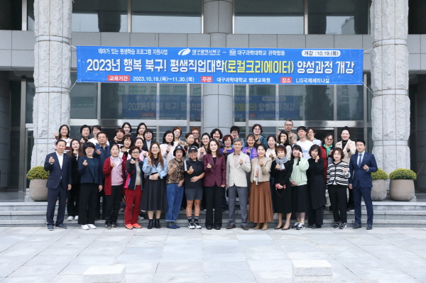 (대구=NSP통신) 최병수 기자 = 대구과학대학교(총장 박지은)는 지난 19일 교내 국제세미나실에서 ‘2023년 행복 북구 평생직업대학(로컬크리에이터) 양성과정’ 개강식을 가졌다.