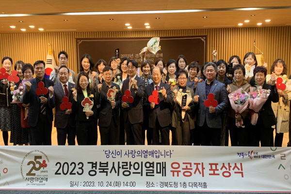 (경북=NSP통신) 조인호 기자 = 경상북도교육청(교육감 임종식)은 24일 경북도청 1층 다목적홀에서 이웃사랑 및 나눔문화 확산에 기여한 유공자에게 교육감 표창과 감사패를 수여했다고 밝혔다.