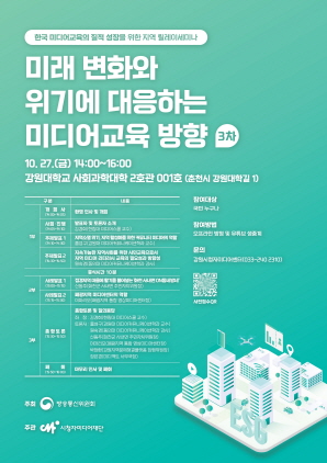 (강원=NSP통신) 조이호 기자 = 시청자미디어재단(이사장 조한규)이 주관하는 ‘한국 미디어교육의 질적 성장’을 위한 세미나가 27일 금요일 춘천시 강원대학교에서 개최된다.
