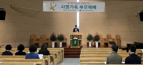 이번 예배는 호스피스 환자의 임종으로 인해 상실과 애도의 시간을 보내고 있는 사별가족에게 이별을 받아들이고 일상으로의 회복을 돕기 위해 마련됐다.