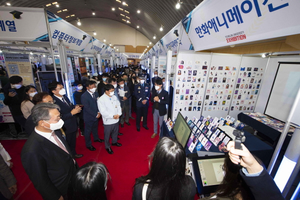 NSP통신-지난해 개최된 영진종합작품전에 관람객들이 만화애니메이션과 부스를 방문, 작품설명을 듣는 모습 (사진 = 영진전문대학교)