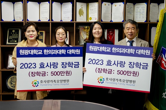 한편 원광대 한의과대학은 효사랑 장학금 이외에도 호몽장학금 등 다수의 자체 장학기금을 운용하고 있으며, 지난해 한의과대학 설립 50주년을 맞아 장학기금 기탁이 이어지고 있어 대학 발전에 큰 도움이 될 것으로 기대하고 있다.
