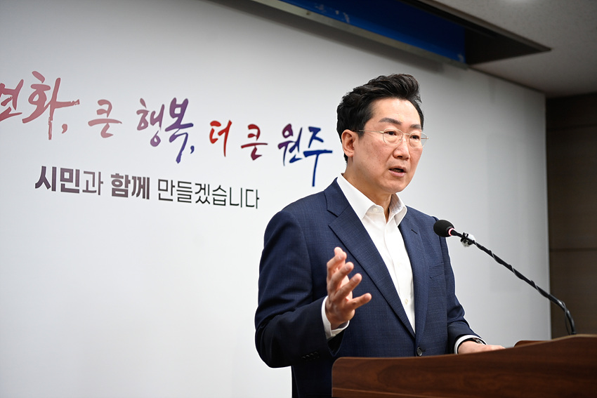 (강원=NSP통신) 조이호 기자 = 원강수 원주시장이 31일 기자브리핑에서 ‘원주미래산업진흥원’ 내년 상반기 출범을 발표했다.