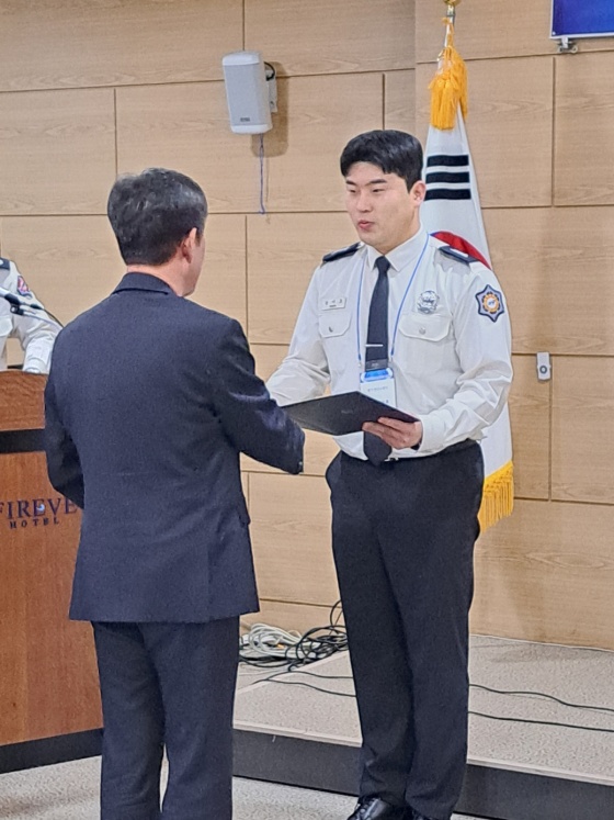 NSP통신-2023년 특별사업경찰운영 수사 사례 발표대회에서 장려상을 수상하는 소방안전특별점검단 소속 왕이호 소방교. (사진 = 안산소방서)