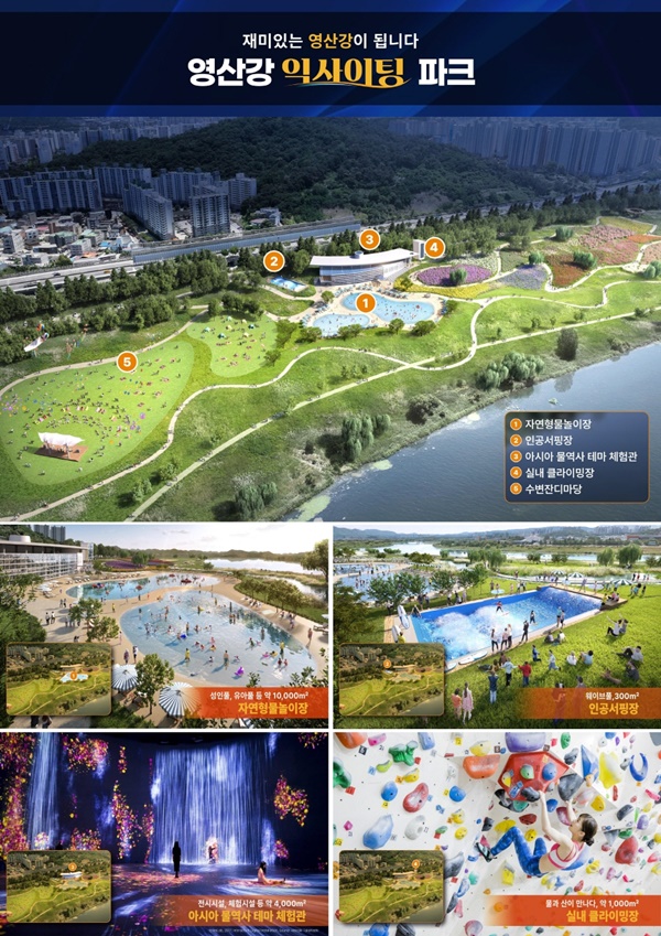 또 영산강을 통해 발달한 문명교류와 도시형성 과정을 디지털로 체험할 수 있는 ‘아시아 물 역사 테마체험관’을 건립할 예정이며 1만㎡ 규모의 자연형 물놀이장, 인공 서핑장, 실내 클라이밍장, 수변 잔디마당 등을 만들어 시민들이 야외공연‧피크닉을 즐기고 축제공간으로도 활용할 수 있도록 한다는 계획이다.