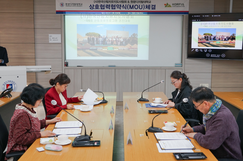 원광디지털대학교와 한국산림치유지도사협회 간 협약식 모습. (사진 = 원광디지털대학교)