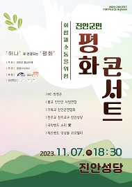 진안군 종교단체와 같이 주관해 진행하는 이번 평화음악회는 불교 진안군 사암연합, 진안군 기독교연합회, 천주교 전주교구 진안성당이 화합해 함께 개최된다.