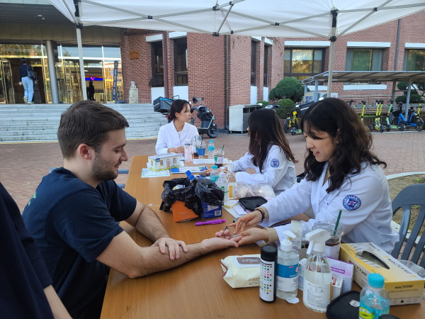 간호학과 교수와 학생들은 외국인 학생들을 대상으로 혈액검사를 통해 혈당, 콜레스테롤, 요산, 혈색소 등을 체크하고, 소변검사와 활력징후, 각종 신체검사를 시행하며 유학생들의 건강상태를 확인할 예정이며, 결과에 따라 건강교육과 상담을 진행하고, 건강부스에서는 건강 자가관리, 흡연 및 음주의 폐해, 감염예방관리 등의 교육이 이뤄졌다.
