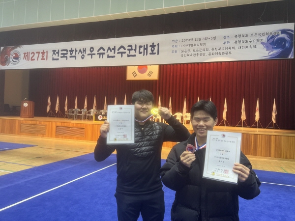 지난 3일부터 5일까지 3일간 충북 보은군 국민체육센터에서 열린 이번 대회에서 영일만공공스포츠클럽 전문선수육성반 우슈팀(지도자 권효재) 소속 한국해양마이스터고 3학년 김형주(+85kg) 선수가 산타 종목에서 금메달을, 투로 종목에서 한국해양마이스터고 3학년 홍도경(전통권) 선수가 동메달을 차지하는 영광을 않았다.