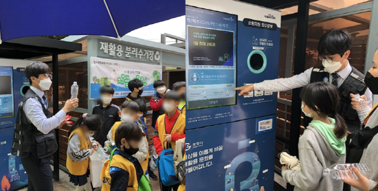 해당 수거기에 빈 캔이나 라벨을 제거한 투명페트병을 넣으면 인공지능 센서가 자동으로 선별 압축해 분리수거하며, 이후 전화번호를 입력하면 재활용품 개당 10포인트(10원)를 적립해 준다.