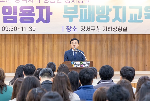 (서울=NSP통신) 강은태 기자 = 서울시 강서구(구청장 진교훈)는 9일 오전 구청 지하상황실에서 공직사회에 첫발을 내딛는 신규공무원과 승진임용자를 대상으로 청렴 교육을 진행했다.