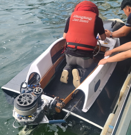 미사리경정장에서 개발된 전기모터보트의 성능측정을 위해 준비하고 있다. (사진 = 국민체육진흥공단)