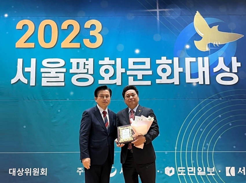(경기=NSP통신) 김병관 기자 = 김호겸 경기도의원(교육기획위원회)이 17일 국회의사당의원회관 대강당에서 열린 ‘2023 서울평화문화대상’에서 도민복지 광역의정대상 수상했다.