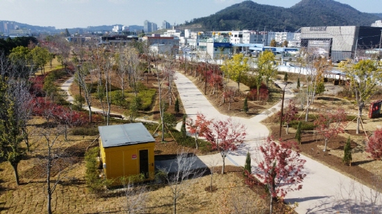 시는 지난 6월 착공해 1.5ha 면적에 총사업비 약 12억 원의 예산을 투입하여 나무의 뿌리 활착을 높일 수 있도록 양질의 토사와 토양개량제를 섞는 등 생육기반 조성에 주력했다.
