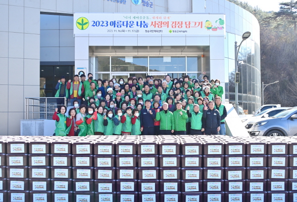 ‘사랑의 김장 담그기’ 행사는 청송군새마을회가 매년 실시하고 있는 사업으로, 청송군새마을부녀회가 주관이 되어 총 4개 회원단체(읍·면새마을부녀회, 새마을지도자군·읍면협의회, 직장·공장새마을운동청송군협의회, 새마을문고·읍면지부)가 직접 각종 재료들을 준비하여 김장 김치를 담가 지역 내 어려운 형편에 있는 소외계층을 대상으로 김장을 전달해주는 행사다.