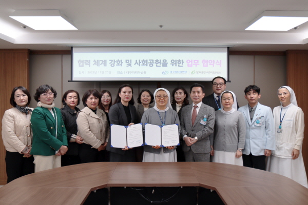 (대구=NSP통신) 최병수 기자 = 대구파티마병원(병원장 김선미 골룸바 수녀)은 지난 20일 본관 5층 임원회의실에서 대구시민간어린이집연합회(회장 김정화)와 업무 협약식을 진행했다.