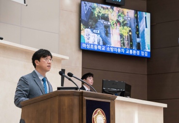 또 도시계획시설 도로의 정비와 가각전제 확보도 필요하다고 강조했다. 이어 마성초등학교 교통환경개선을 위한 계획을 갖고 있는지 답변을 요청했다.