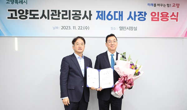 NSP통신-이동환 고양특례시장(좌)과 강승필 제6대 고양도시관리공사 사장(우) (사진 = 고양도시관리공사)