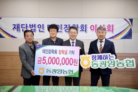 (전남=NSP통신) 김성철 기자 = 동광양농협(조합장 이돈성)은 태인동주민센터에서 태인동 지역인재 육성을 위해 태인장학회(이사장 이은찬)에 500만 원을 기탁했다.