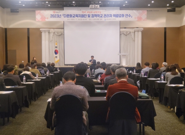 (경북=NSP통신) 조인호 기자 = 경상북도교육청(교육감 임종식)은 24일 더케이호텔 경주에서 다문화 교육지원단과 다문화 교육 정책학교, 연구학교, 관리자 등 109명이 참석한 가운데 ‘2023년 다문화 교육 역량 강화 연수’ 를 실시했다.