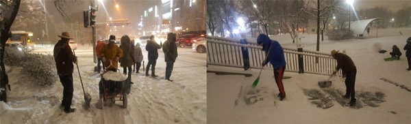 동 행정복지센터에서는 직능단체를 중심으로 주민들이 자율적으로 참여하여 육교, 경사로, 버스정류장 등 통행에 불편을 겪을 수 있는 곳을 우선적으로 제설한다. 상대적으로 제설에 시간이 오래 걸리는 마을 안길, 이면도로의 경우 동별 제설봉사단, 트랙터 제설봉사단과 협력해 제설작업에 나선다. 시는 ‘이웃사랑과 배려를 실천하는 눈 치우기 함께 해요’ 운동을 홍보하고 내 집·내 점포 앞 눈 치우기에 시민들의 동참을 독려하고 있다.