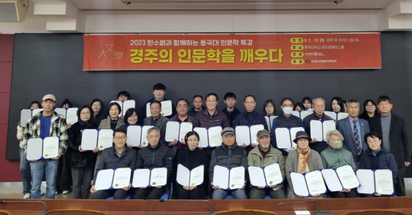 (경북=NSP통신) 조인호 기자 = 동국대학교 WISE캠퍼스 인문학연구소는 지난 23일 동국대 원효관 4층 글로벌에이스홀에서 ‘2023년 한수원과 함께하는 동국대 인문학 특강’ 수료식을 개최했다고 밝혔다.