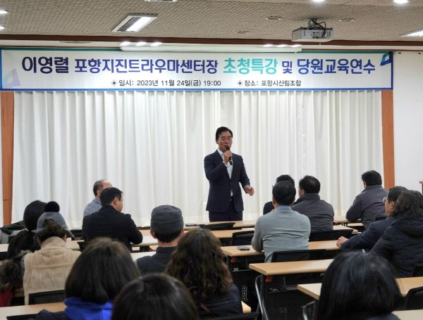 이날 당원교육과 함께 이영렬 포항지진 트라우마 센터장의 특강도 진행됐다.