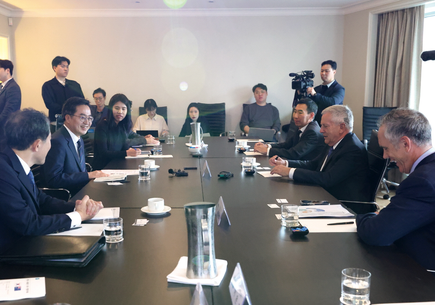 김동연 지사는 28일 호주 시드니의 한 호텔에서 한·호 경제협력위원회(AKBC·Australia-Korea Business Council) 빌 패터슨(Bill Paterson) 국방분과위원장, 제임스 최(James Choi) 금융분과 위원, 데이브 녹스(Dave Noakes) 금융분과 위원을 만났다. 특히 빌 패터슨 위원장과 제임스 최 위원은 주한 호주대사를 과거 역임한 데 이어 한국·호주 간 대표적인 민간 경제협의체 ‘한·호 경제협력위원회’에 소속된 한-호 교류의 핵심 인물이다.