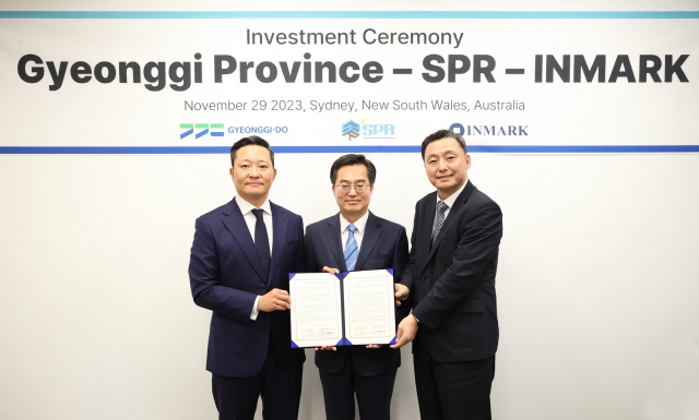 김동연 지사는 29일 호주 시드니의 코트라(KOTRA·대한무역투자진흥공사) 사무실에서 존 지(John Jee) 인마크글로벌(INMARK Global) 상무, 최흥용 에스피알(SPR) 부사장과 LNG냉열을 활용한 친환경 고순도 플라스틱 재생원료 제조시설 건립을 위한 투자의향서(Letter of Intent) 행사를 개최했다.