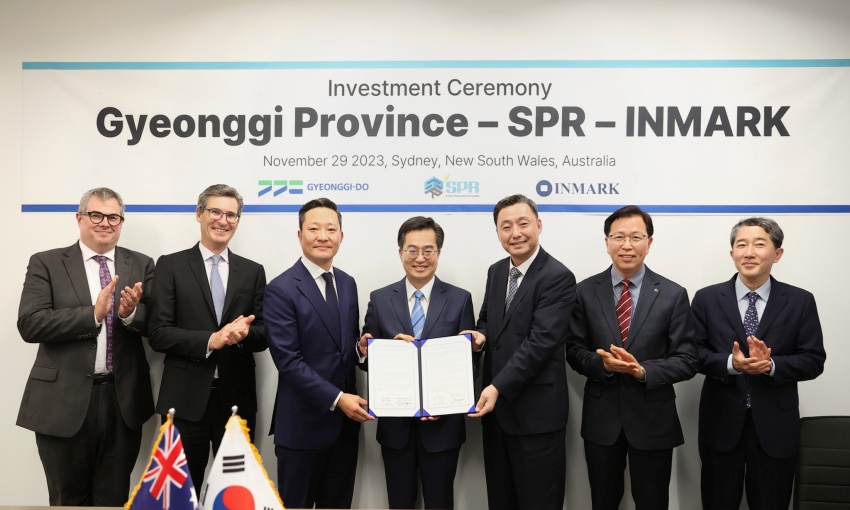 NSP통신-현지시간 29일 오후 코트라 시드니무역관에서 열린 경기도-SPR-INMARK 투자행사에서 김동연 경기도지사, 지호준 인마크 글로벌 상무, 최흥용 SPR 부사장 등 현지 관계자들이 기념촬영을 하고 있다. (사진 = 김동연 도지사 페이스북)