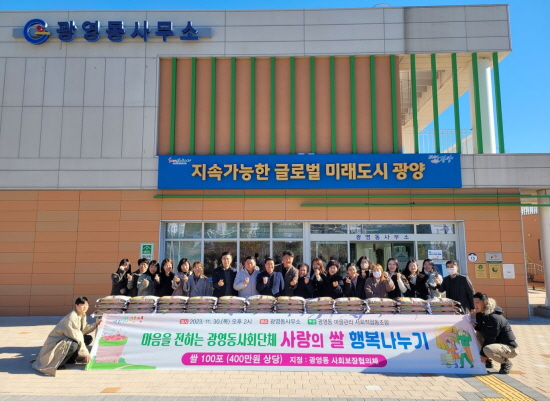 광영동 사회단체는 이번 백미 기탁 외에도 지난 11월 24일 김장나눔행사로 김장(5kg) 125통을 지원해 19개 경로당과 소외계층 106가구에 지원한 바 있다.