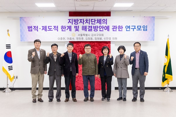 (서울=NSP통신) 강은태 기자 = 서울시 강서구의회(의장 최동철) 의원 연구단체인 ‘지방자치단체의 법적·제도적 한계 및 해결방안에 관한 연구모임’(공동대표 이충현·정재봉, 이하 지자체 한계 연구모임)이 지난달 30일 1층 다목적실에서 연구용역 최종보고회를 개최했다고 1일 밝혔다.