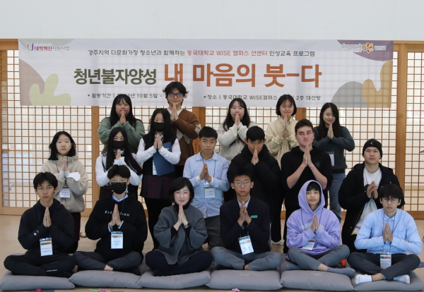 ‘내 마음의 붓-다’ 는 동국대 WISE캠퍼스 대학혁신지원사업의 일환인 지역 연계 명상 프로그램으로 경주지역 다문화가정 학생들을 대상으로 지난 10월 5일부터 11월 30일까지 6회에 걸쳐 운영했다.