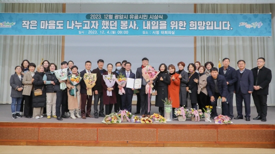 ▶원인불명의 근이영양증 투병 공무원 돕기 '만원의 희망 찾기 운동' 실무위원장으로써 성공적인 모금 활동(7700만 원 모금 전달) ▶경전선 KTX-이음 광양역 정차 추진협의회 민간추진위원장을 맡아 서명운동 7만 명 달성 및 적극적인 활동으로 풀뿌리 민주주의 실현과 광양시민의 행복을 위한 성숙한 지방자치 구현에 앞장섰다.