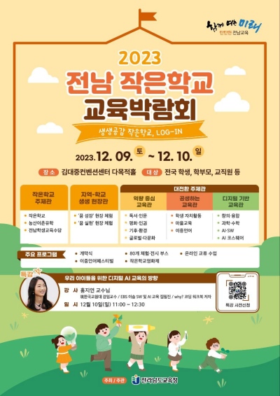 (전남=NSP통신) 김용재 기자 = 전남도교육청이 오는 9 ~10일 이틀 동안 광주시 서구 김대중컨벤션센터 다목적홀에서 전국 학생, 학부모, 교직원 등을 대상으로 ‘2023 전남 작은학교 교육박람회’를 개최한다.