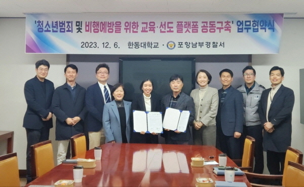 (경북=NSP통신) 조인호 기자 = 포항남부경찰서와 한동대학교는 6일 청소년교육 및 선도 플랫폼 공동구축을 위한 업무협약을 체결했다고 밝혔다.