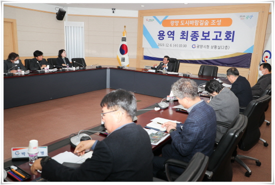 (전남=NSP통신) 김성철 기자 = 광양시는 지난 6일 정인화 광양시장과 전라남도 관계 공무원, 도심숲가꾸기위원장, 전문가 등을 포함한 20여 명이 참석한 가운데 ‘광양 도시바람길숲 조성’ 용역 최종보고회를 개최했다.