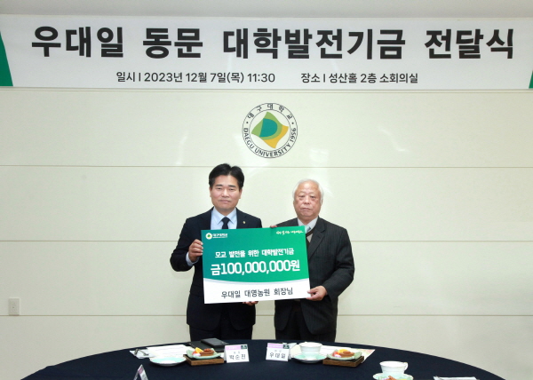 우대일 대영농원 회장, 대구대 발전기금 1억원 기탁