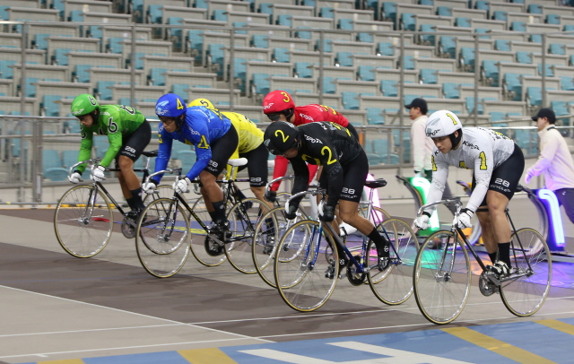 NSP통신-28기 경륜선수들이 광명스피돔에서 시범경주를 진행하고 있다. (사진 = 국민체육진흥공단)