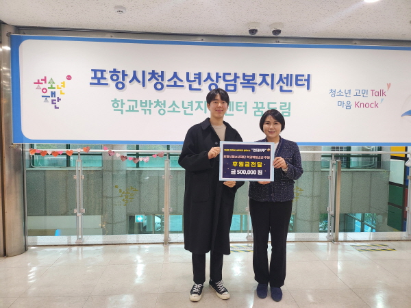이번 기부금은 포항시청소년재단 상담복지센터 내 학교 밖 청소년들을 위한 지원금으로 사용될 예정이다.