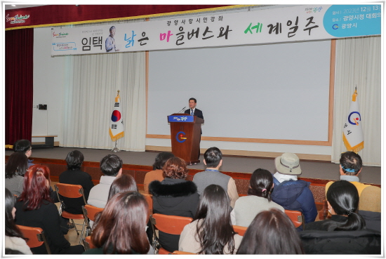 (전남=NSP통신) 김성철 기자 = 광양시는 시청 대회의실에서 시민들을 대상으로 ‘마을버스 세계를 가다’ 저자 임택을 초청해 ‘광양사랑 시민강좌’를 개최했다.