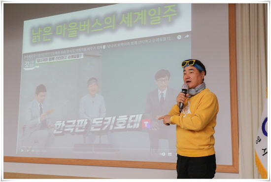 강연은 ‘느지막한 나이에 제2의 인생을 도전한 미국의 국민화가 모제스, 발레리노 존 로우, 제한속도 60km를 뛰어넘은 폐차 직전 마을버스’에 대한 내용으로 여행, 더 나아가 우리의 삶을 새로운 시각으로 바라볼 수 있는 시간으로 진행됐다.