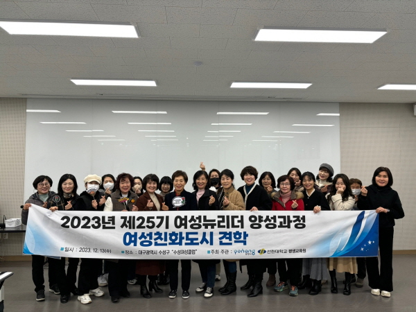 (경북=NSP통신) 조인호 기자 = 포항 선린대학교(총장 곽진환)는 지난 13일 제25기 포항시 여성뉴리더 양성과정 프로그램 일정 중 여성친화도시로 지정된 대구광역시 수성구 ‘수성여성클럽’ 방문 견학을 가졌다.