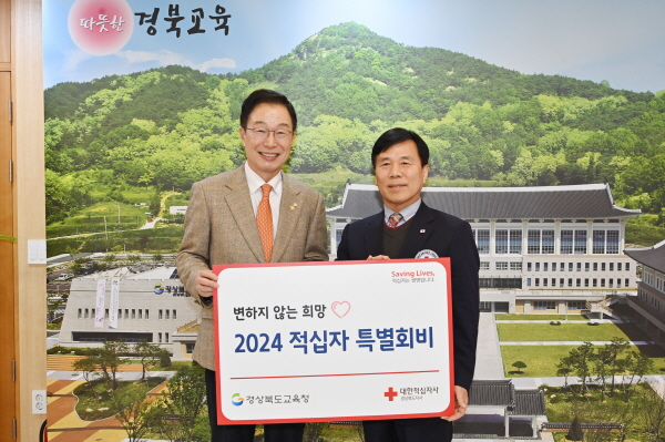 (경북=NSP통신) 조인호 기자 = 경상북도교육청(교육감 임종식)은 15일 본관 접견실에서 ‘2024년 적십자 특별회비’ 를 대한적십자사 경북지사(회장 김재왕)에 전달했다.