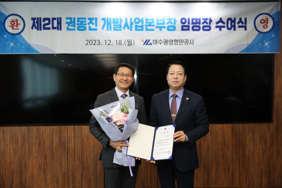 (전남=NSP통신) 김성철 기자 = 여수광양항만공사는 지난 15일 권동진 신임 개발사업본부장을 임명하고 임명장 수여식을 가졌다고 밝혔다.